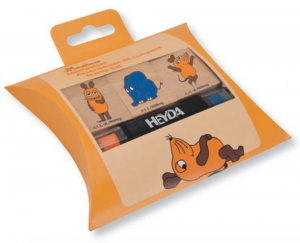 Stempel aus Holz: je 2 x Motiv Maus und 1 x Elefant, inkl. Stempelkissen in orange und blauAnwendungsbeispiele: Basteln und kreativ sein. zum Dekorieren und Gestalten von Karten, Briefpapieren, Einladungen, Fotoalben etc.