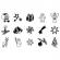 kuchenmann, Engel, Kerze, Glocken, Schneeflocke, Sternschnuppe, Stern, Rentier, Schneemann, Plätzchen, Baumkugel und Tannenbaum.