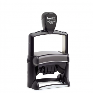 Der Trodat Professional 5480 Datumstempel mit individueller Textplatte hat eine Abdruckfläche von 68x47mm.