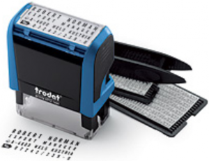 Stempel-Set bestehend aus verschiedenen Buchstaben, Ziffern und Sonderzeichen. Können als individuelle Stempeltexte zusammengesetzt und immer wieder abgeändert werden. Das Stempelkissen ist im Typomatic Printy bereits eingebaut und kann nach tausenden Abdrucken sehr einfach gewechselt werden.