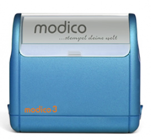 modico Stempel mit Logo » M-Serie: Bürostempel » M3 Abdruckfläche 49x15mm » modico 3 blau 49x15mm