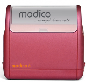 Der modico Stempel M 5, Stempelplatte 63x24mm, Gehäuse 85x42x78mm, überzeugt durch sein außergewöhnliches Design und ist wegen des verwendeten Herstellungsverfahrens sehr günstig. Er erzeugt ein sehr scharfes Schriftbild - selbst bei kleinsten Schriften kann auch Halbtöne (z.B. Fotos) oder saubere Vollflächen darstellen Des Weiteren ist kein seperates Stempelkissen erforderlich sind bis zu 20.000 Abdrucke mit einem Farbkissen möglich